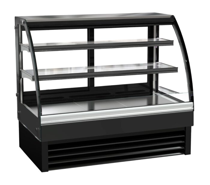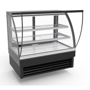 Dubbelwandig glas, voorruit kan open en de bovenkant/toonbank is rvs