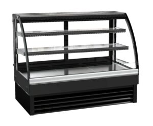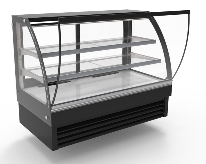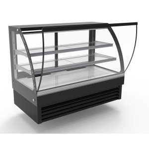 Dubbelwandig glas, voorruit kan open en de bovenkant/toonbank is rvs