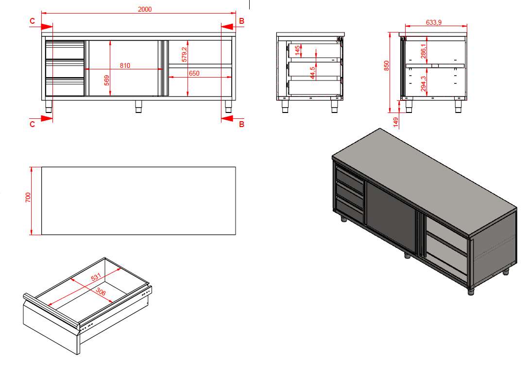 700 WERKTAFEL SCHUIFDEUREN LADEN LINKS 2000