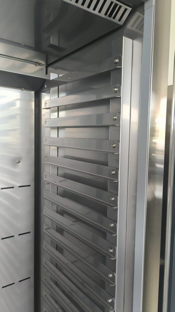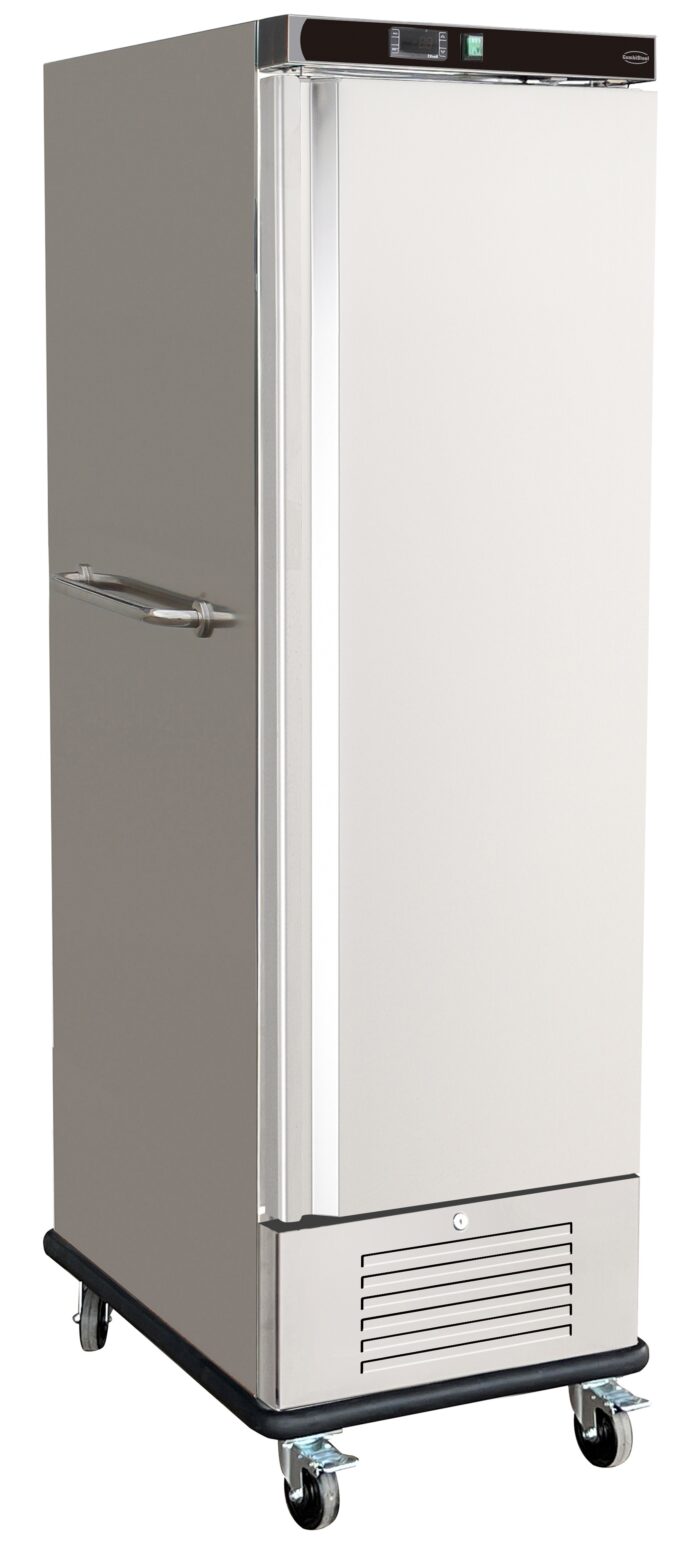 Deze professionele koelwagen is ideaal voor het bewaren en vervoeren van grote hoeveelheden bereide gerechten op de juiste temperatuur. Met een capaciteit van 20x 1/1 GN is hij perfect voor drukke keukens, catering of banketzalen. De geventileerde koeling zorgt voor een gelijkmatige temperatuurverdeling in de hele kast, terwijl de robuuste wielen en stootvaste bumper hem makkelijk verrijdbaar én beschermd maken – zelfs wanneer hij volledig beladen is. De RVS behuizing maakt de wagen duurzaam en eenvoudig te reinigen. Afmetingen 672x780x2030 mm (BxDxH) – inhoud 290 liter – temperatuur -2/+8°C.