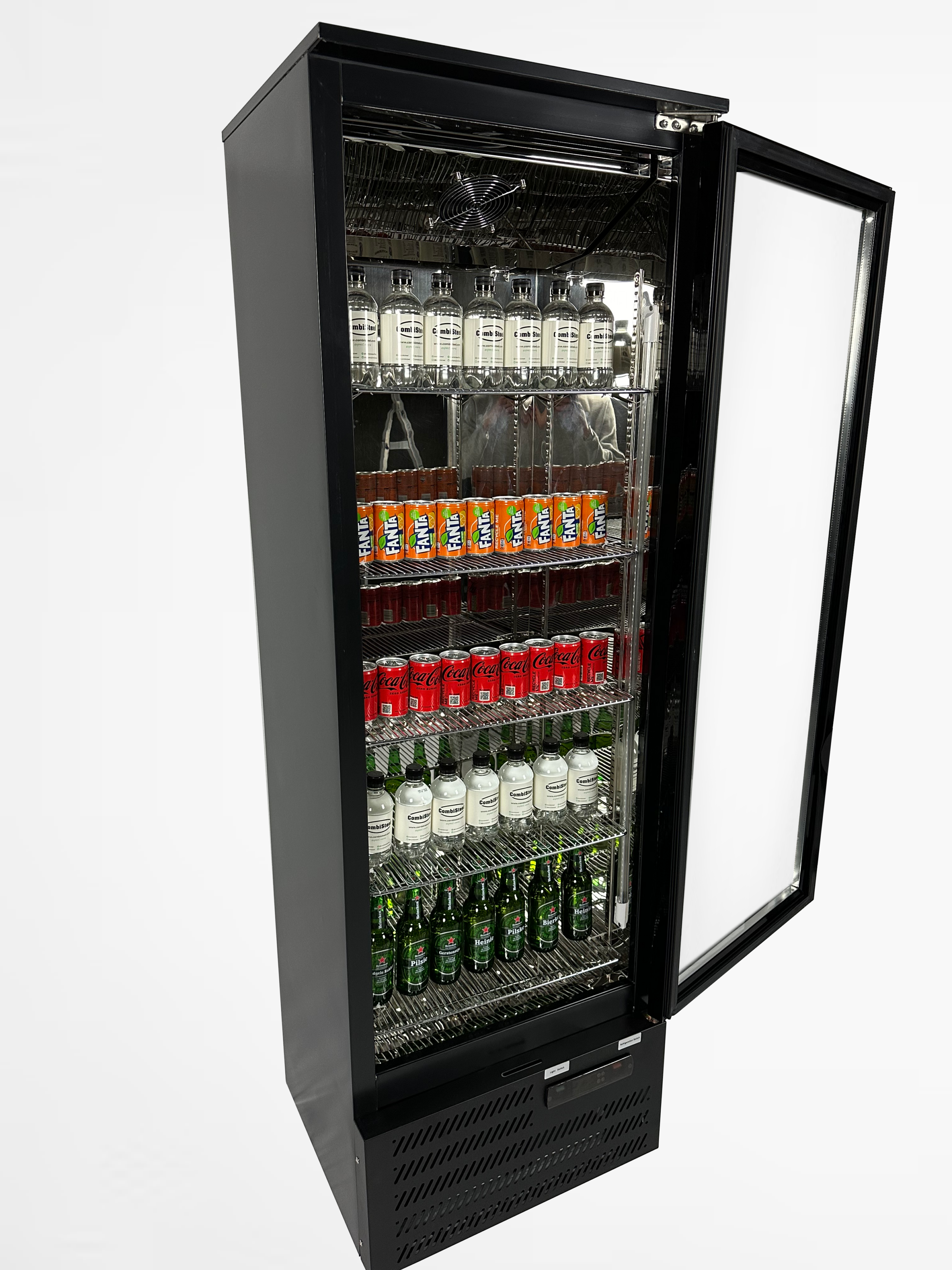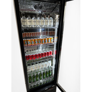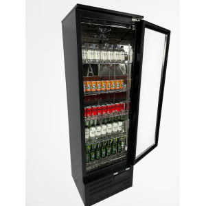Deze stijlvolle en professionele barkoeler in zwarte uitvoering is perfect voor gebruik in bars, restaurants en andere horecagelegenheden. Met een royale inhoud van 293 liter en een strak design biedt deze koeler niet alleen een praktische, maar ook een visueel aantrekkelijke oplossing voor het bewaren van dranken. De geforceerde koeling zorgt ervoor dat uw dranken snel en gelijkmatig gekoeld worden, terwijl de verstelbare roosters maximale flexibiliteit bieden in de indeling. De afmetingen zijn 600x515x1820 mm (LxDxH) – verbruik 0.28 kW – inhoud 293 liter – temp. 0/+10ºC – gewicht 77 kg.