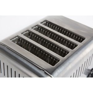 Deze professionele broodrooster is de perfecte keuze voor drukke ontbijtzalen, lunchrooms of zelfbedieningsbuffetten. Dankzij de ruimte voor 4 sneetjes brood en het efficiënte energieverbruik is hij ideaal voor snel en gelijkmatig roosteren. Met zijn robuuste en stijlvolle roestvrijstalen behuizing past hij moeiteloos in elke professionele keuken. De afmetingen zijn 290x260x220 mm (LxDxH) – verbruik 1.8 kW – gewicht 4 kg.