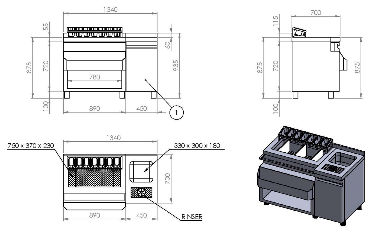 COCKTAIL BAR STATION INCL. SPOELBAK, GLAZENSPOELER, GN-BAKKEN EN SPEEDRAIL VOOR FLESSEN