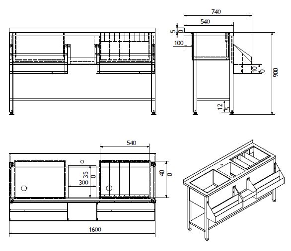 Deze robuuste cocktail bar station is speciaal ontworpen voor gebruik in professionele bars en biedt een efficiënte werkplek voor het bereiden van drankjes. Hij is uitgerust met 2 geïsoleerde ijsbakken met dividers, met aan de voorzijde een handige ‘speedrail’ voor snelle toegang tot flessen en een schap voor een blender. De opstaande rand aan de achterzijde voorkomt dat items van het station vallen. Het model wordt geleverd met sifon en standpijp, maar zonder kraan. De afmetingen zijn 1600x740x900 mm (LxDxH) – gewicht 81.2 kg.