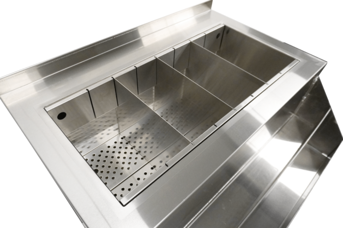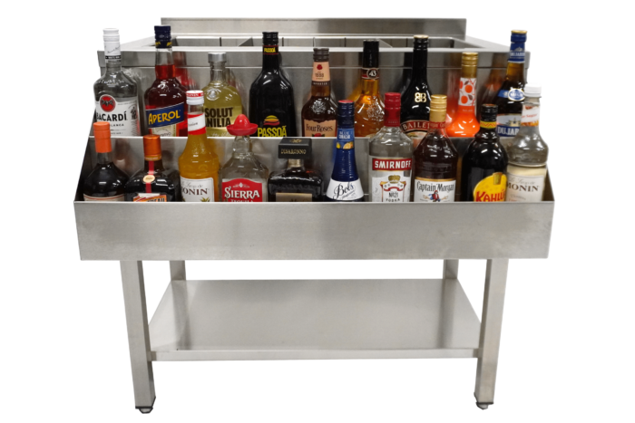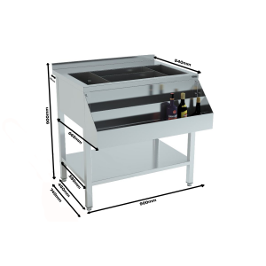 Deze robuuste cocktail bar station is speciaal ontworpen voor gebruik in professionele bars en biedt een efficiënte werkplek voor het bereiden van drankjes. Hij is uitgerust met een geïsoleerde ijsbak met dividers en een handige ‘speedrail’ aan de voorkant voor snelle toegang tot flessen. De opstaande rand aan de achterzijde voorkomt dat items van het station vallen. De afmetingen zijn 900x740x900 mm (LxDxH) – gewicht 54.5 kg.