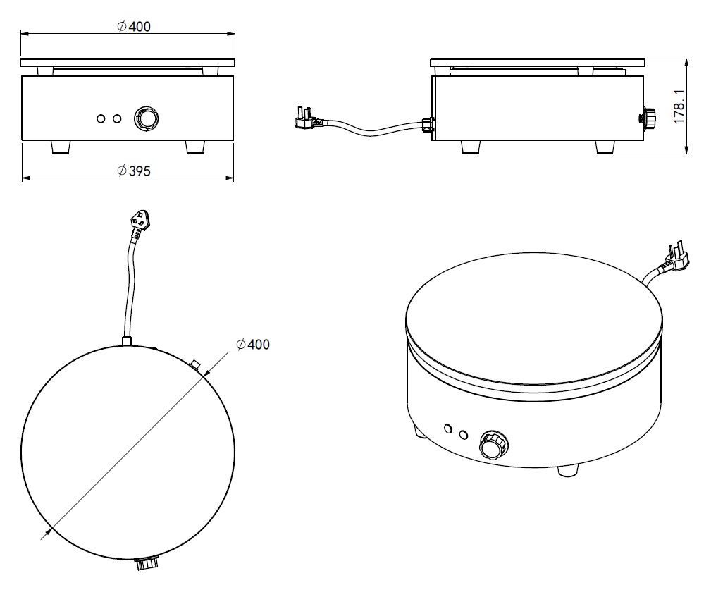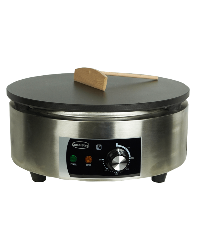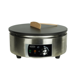 Deze handige crêpe maker is veelzijdig inzetbaar; ideaal voor catering op locatie of bij evenementen. Dankzij het compacte ontwerp is deze crêpe maker gemakkelijk te plaatsen of mee te nemen, maar biedt hij toch voldoende vermogen om heerlijke crêpes te bereiden. Bovendien heeft hij een moderne uitstraling die past in elke omgeving. De afmetingen zijn 400x400x178mm (LxBxH) – temp. +50/+300ºC – verbruik 3 kW – gewicht 15.7 kg.