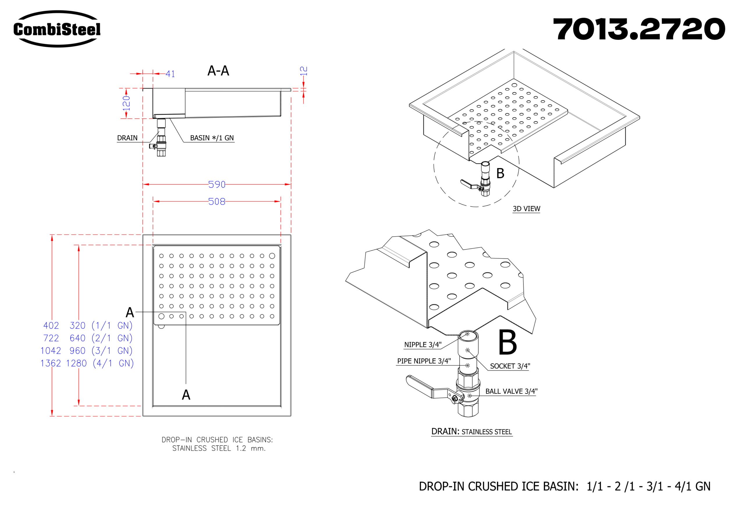 CRUSHED ICE BAK 1/1 INBOUW 304 aantal