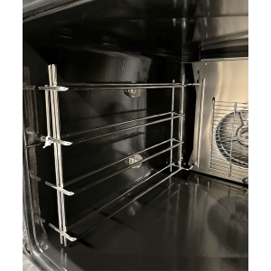 De convectieoven van Combisteel is dé perfecte oplossing voor het snel en gelijkmatig bereiden van allerlei gerechten. Deze oven combineert efficiëntie, gebruiksgemak en duurzaamheid. De handige timer met alarm voorkomt dat je een gerecht mist, en de interne verlichting kan handmatig worden in- of uitgeschakeld voor optimaal zicht. Bovendien beschikt de oven over een vochtinjectie-functie: met één druk op de “spray switch” knop, spuit de oven water op de draaiende ventilator, waardoor een wolk van mist ontstaat. Dit houdt het voedsel vochtig en zorgt voor een gelijkmatige garing. De afmetingen zijn 834x765x572 mm (LxDxH) – vermogen 6.4 kW – gewicht 72 kg.
