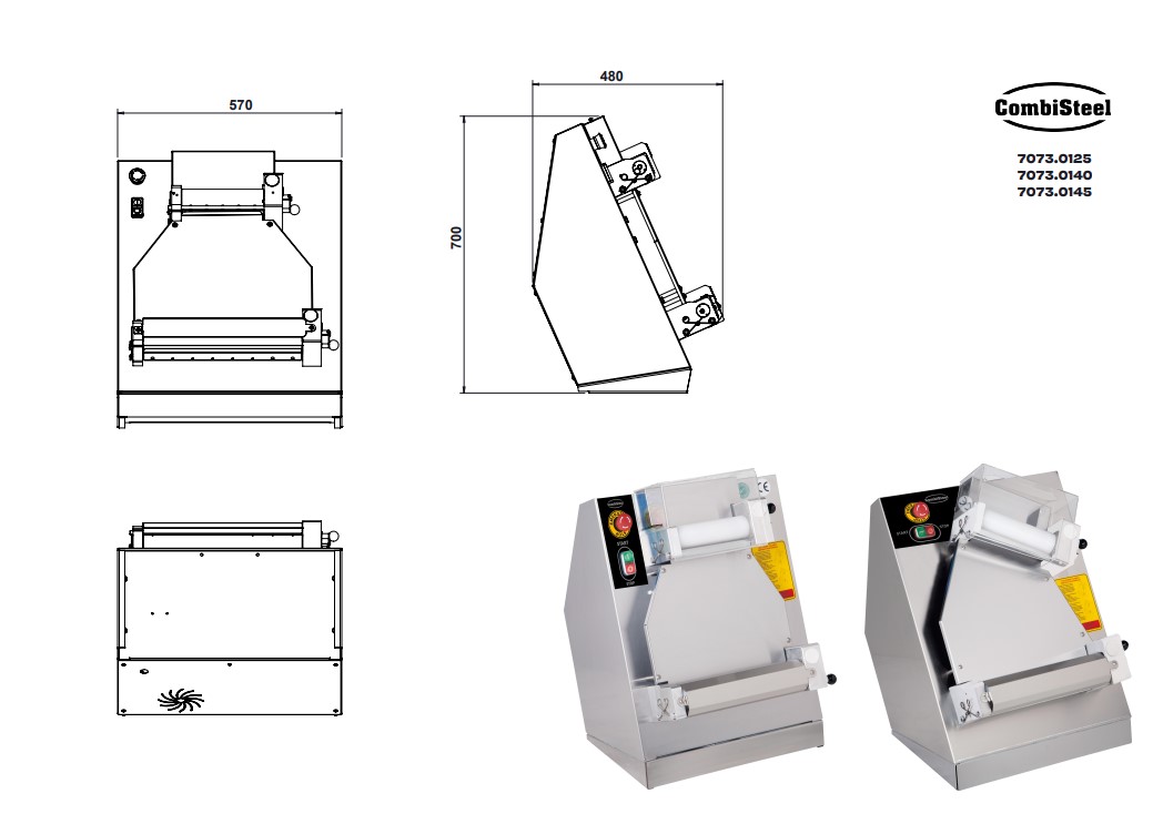 Lengte roller: 400mm. Verstelbare dikte: tot 4 mm