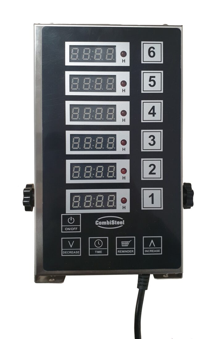Deze robuuste digitale keukentimer is de ideale keuze voor horecagelegenheden en professionele keukens die hun kook- en bakprocessen nauwkeurig willen timen. Met zes onafhankelijke kanalen kunt u meerdere taken tegelijkertijd beheren en zorgen dat elk gerecht op het juiste moment klaar is. Dankzij de duidelijke digitale weergave en het gebruiksvriendelijke ontwerp is deze timer geschikt voor elke keuken, van restaurant tot hotel. Een handige functie is de reminder om gerechten te schudden, bijvoorbeeld voor het omschudden van friet tijdens het bakken. De afmetingen zijn 130x240x36 mm (LxBxH) – verbruik 1,8 Watt – gewicht 880 g.