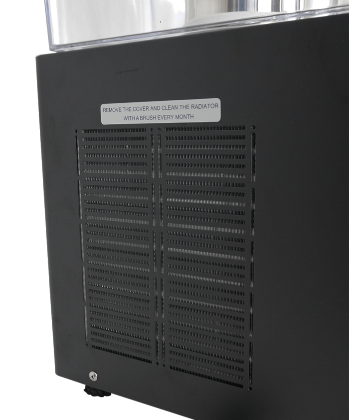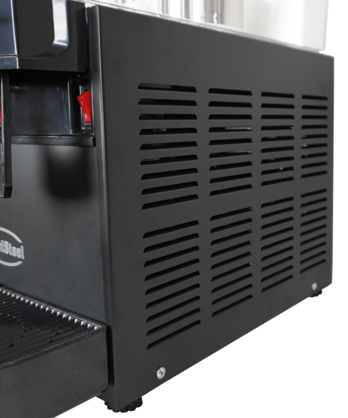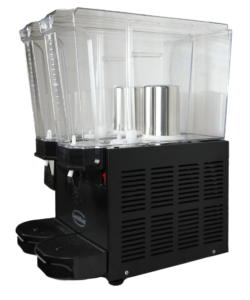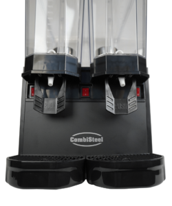 De Combisteel dranken-dispenser met een royale capaciteit van 2×20 liter is ideaal voor het gekoeld serveren van heldere dranken zoals water, limonade en vruchtensappen. Dankzij de dubbele tank kun je gemakkelijk twee verschillende dranken gelijktijdig aanbieden. Het compacte ontwerp met zwarte behuizing past perfect in elke horecaomgeving, bar of buffet. De dispenser werkt handmatig en is voorzien van een lekbak voor een nette werkplek. Afmetingen: 365x520x665 mm (BxDxH) – verbruik 0,75 kW – temperatuurbereik +5/+10ºC – gewicht 35 kg.