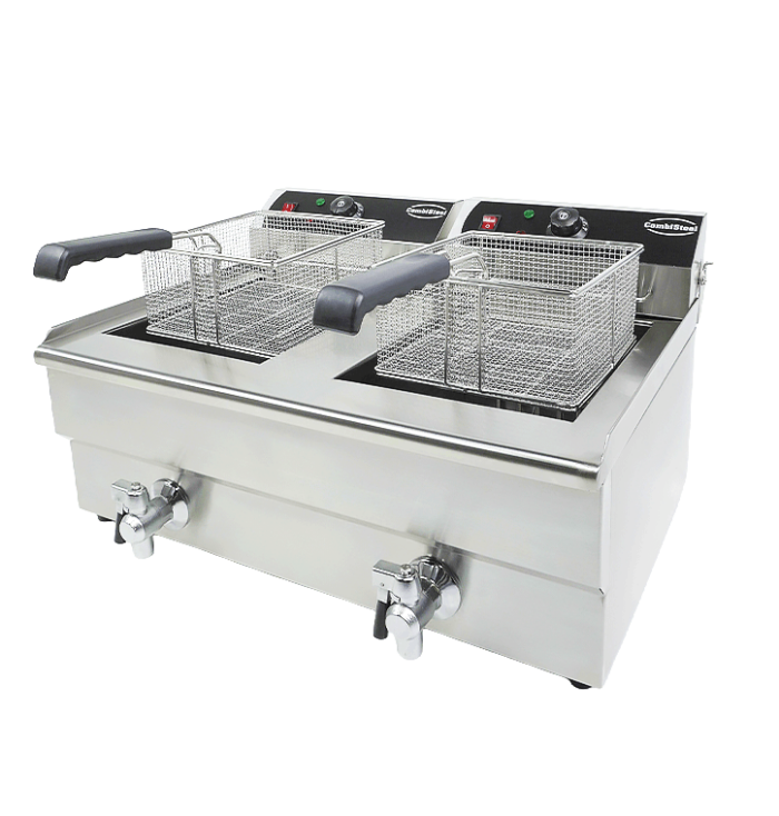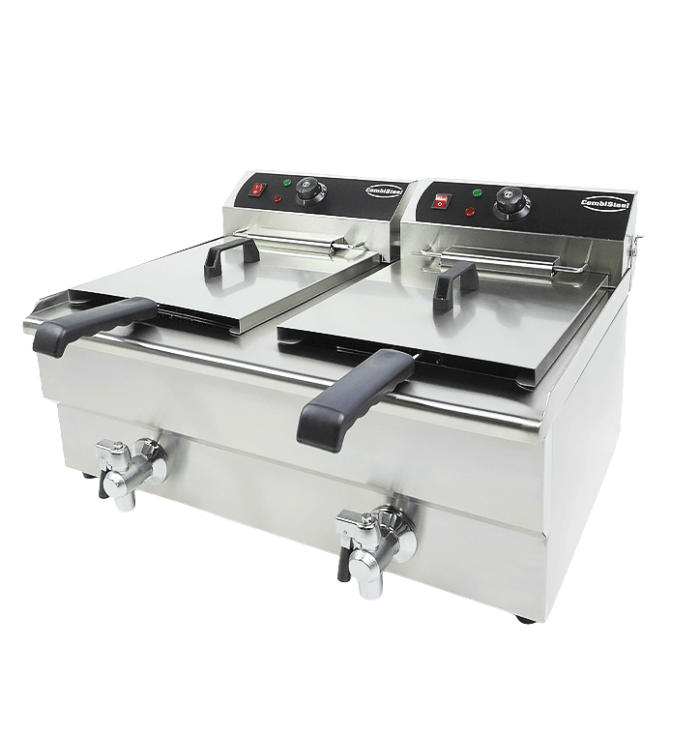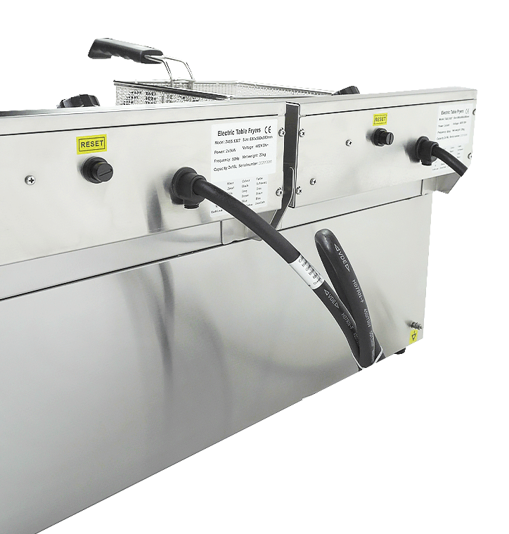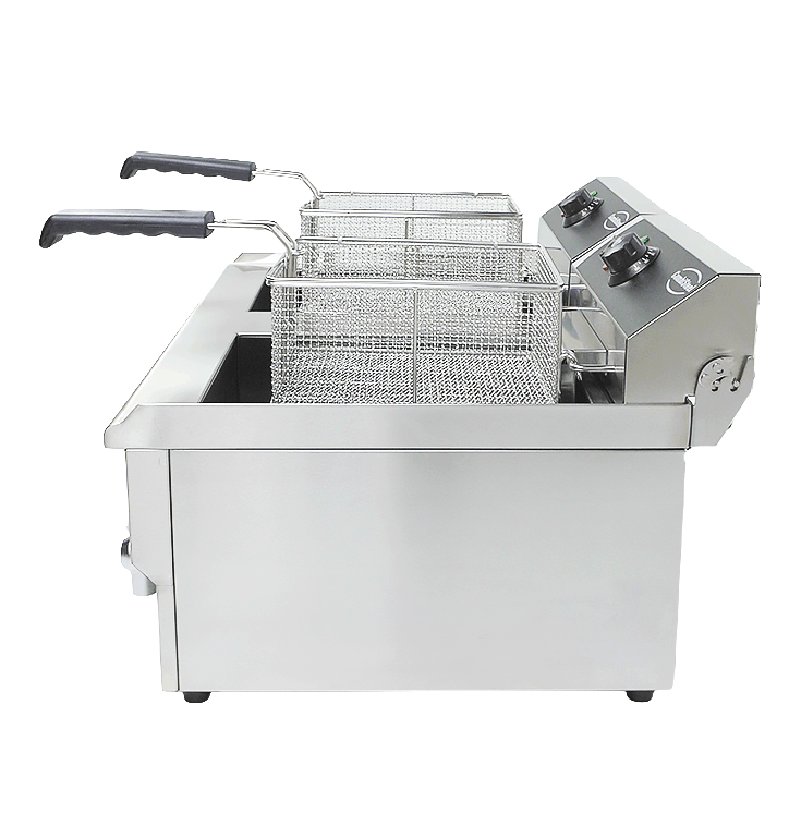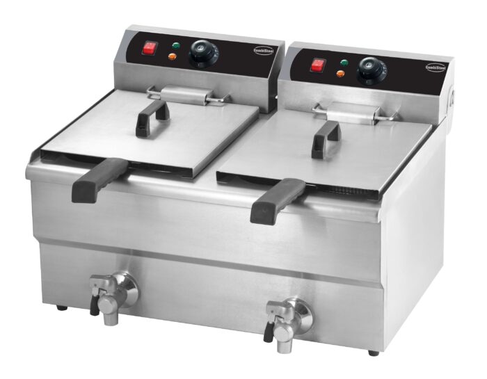 Maak kennis met onze krachtige dubbele tafelfriteuse met een royale inhoud!
