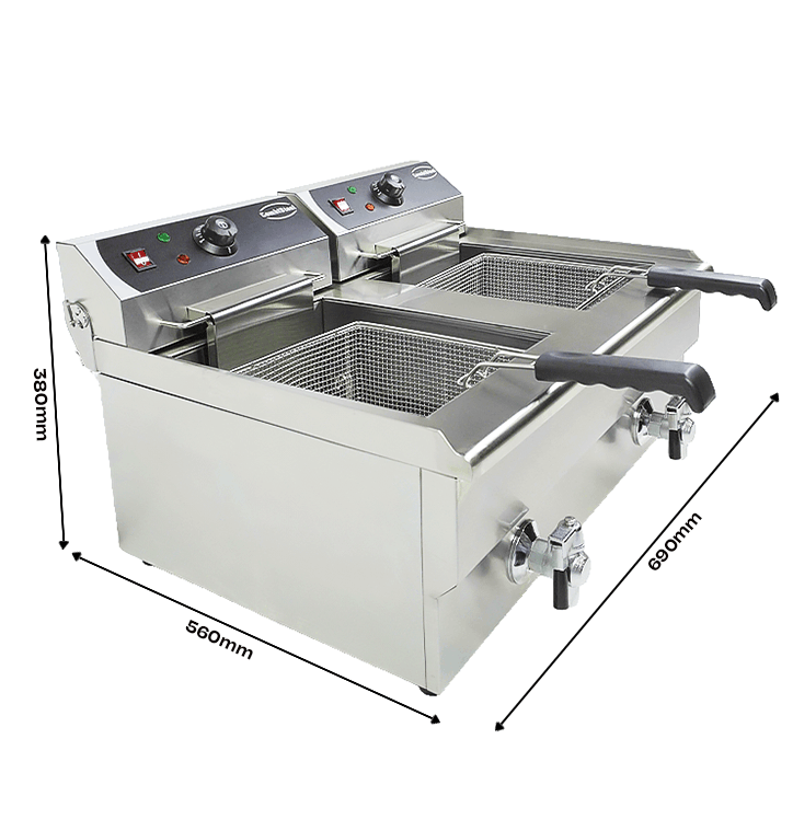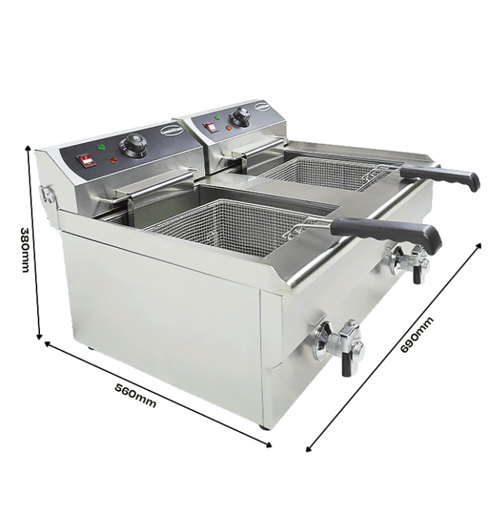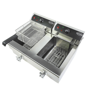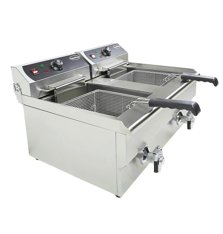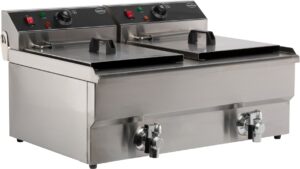 Of u nu werkt in een drukke keuken of gewoon de beste kwaliteit wilt in uw gerechten, deze dubbele tafelfriteuse biedt de perfecte balans tussen capaciteit en gebruiksgemak. Bestel nu en verhoog de efficiëntie in uw keuken met deze veelzijdige friteuse!