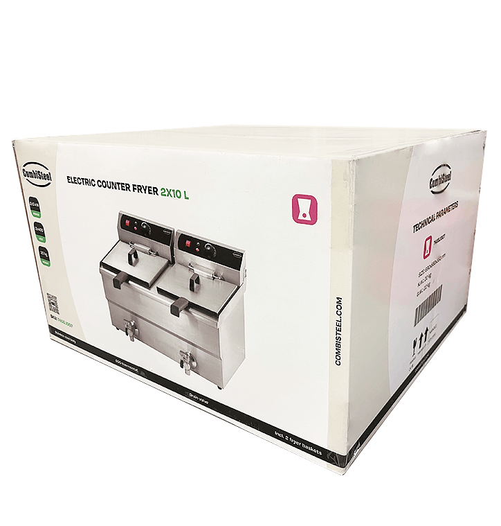Deze Combisteel elektrische tafelfriteuse is speciaal ontworpen voor professionele keukens, buffetten, catering en evenementen. Met een indrukwekkende capaciteit van 2×10 liter kan je makkelijk grote hoeveelheden voedsel bereiden of twee verschillende gerechten tegelijkertijd frituren, ideaal voor drukke momenten en een veelzijdig menu. Het compacte ontwerp past in iedere keukenopstelling, terwijl de robuuste roestvrijstalen constructie en krachtige prestaties zorgen voor knapperige en perfect gefrituurde gerechten. De afmetingen zijn 690x560x380 mm (LxDxH) – spanning 400 Volt – vermogen 2×5 kW – inhoud van 2×10 liter – gewicht 20 kg.
