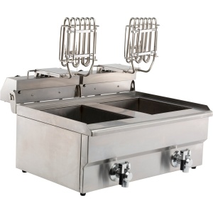 Of je nu een professionele chef of een enthousiaste hobbykok bent, deze dubbele tafelfriteuse is de perfecte keuze om gerechten efficiënt en tot in perfectie te frituren. Bestel nu en breid je keuken uit met deze krachtige en veelzijdige friteuse!