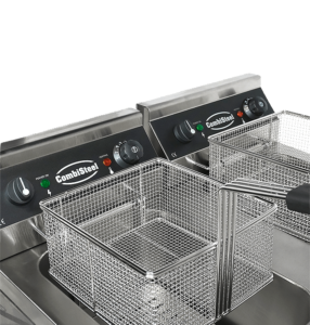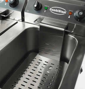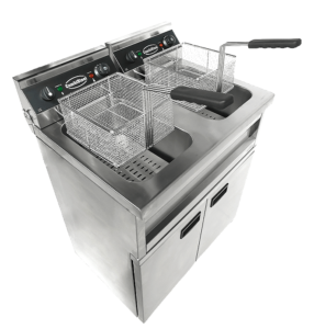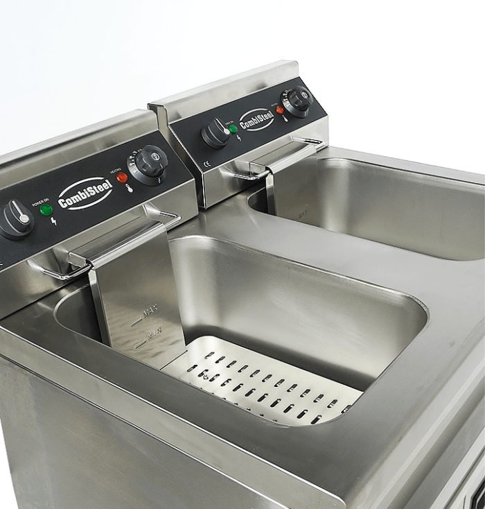 Deze elektrische friteuse met twee afzonderlijke 9-liter bakken is ideaal voor professionele keukens die flexibiliteit, capaciteit en efficiëntie nodig hebben. Dankzij het dubbele systeem kan elk compartiment apart worden bediend – perfect voor het tegelijk frituren van verschillende producten of het gescheiden houden van oliën. De friteuse is volledig vervaardigd uit roestvrij staal en uitgerust met twee frituurmanden inclusief deksels, twee deuren voor handige opbergruimte en een aftapkraan voor het makkelijk legen van de vetbakken. De speciaal ontworpen koude zone laat kruimels en resten naar de bodem zakken, waardoor de kwaliteit van het vet behouden blijft en de levensduur ervan aanzienlijk wordt verlengd. Afmetingen: 695x530x970 mm (BxDxH) – Spanning: 2x 230V – Vermogen: 2x 3,3 kW – Inhoud: 2x 9 liter – Gewicht: 49 kg