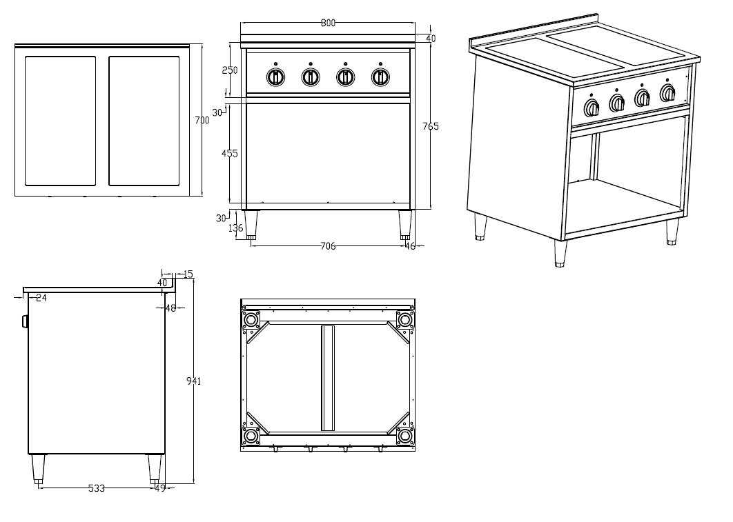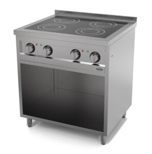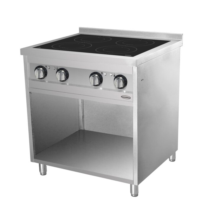 Dit inductie fornuis van Combisteel uit de Entry Line 700-serie biedt vier afzonderlijk bedienbare kookzones van elk 3,5 kW. Het is daarmee dé krachtige en efficiënte oplossing voor professionele keukens die hoge prestaties en flexibiliteit vragen. Ideaal voor grotere keukens, drukke foodservices of mobiele opstellingen. De kookzones zijn geschikt voor pannen met een diameter van 16 tot 25 cm en worden bediend met draaiknoppen. Voorzien van automatische uitschakeling na 4 uur, oververhittingsbeveiliging en een robuuste AISI 201 RVS behuizing. Afmetingen: 800x700x941 mm (BxDxH) – Spanning: 400V – Vermogen: 4 x 3,5 kW – Gewicht: 81 kg.