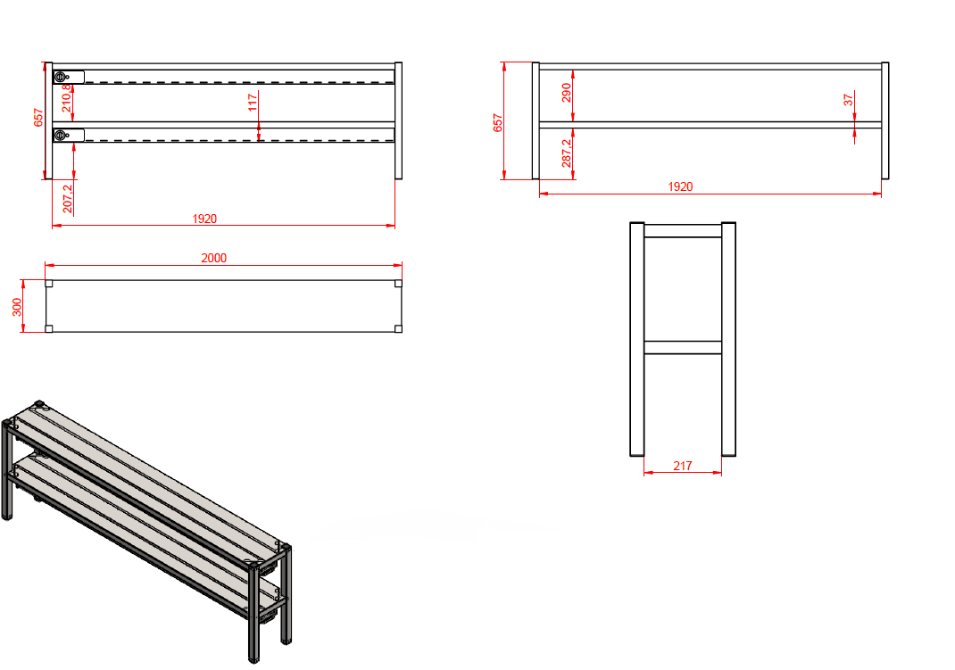 ETAGERE 2 NIVEAUS 1200 DEMONT. aantal