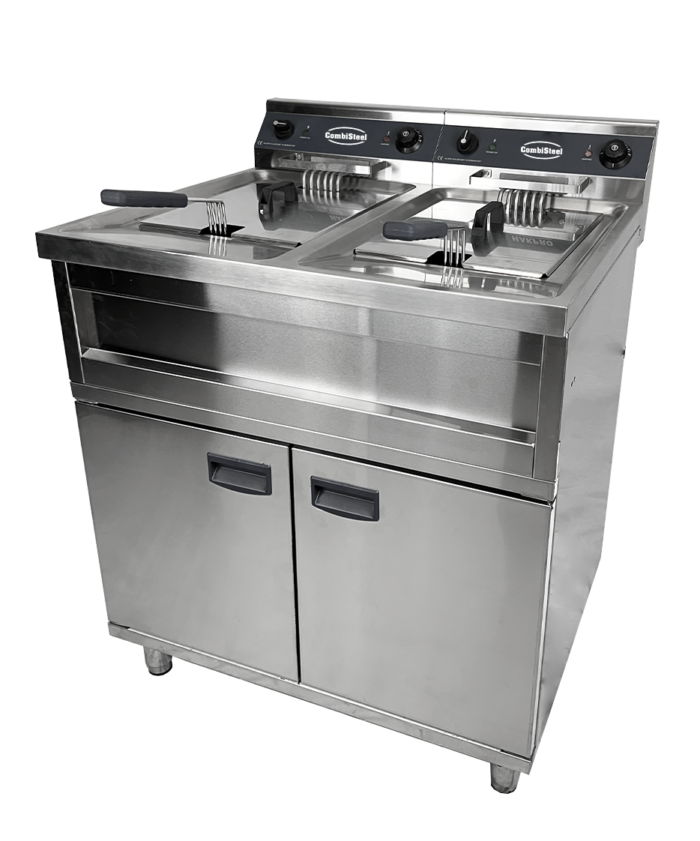 De Combisteel Entry Line 700 elektrische friteuse met twee aparte 12-liter bakken is een veelzijdige en robuuste uitbreiding van jouw professionele kooklijn. Met een totaal vermogen van 12 kW (2x 6 kW) en een temperatuurbereik van 0 tot 180°C biedt deze friteuse snelle, nauwkeurige en energiezuinige prestaties voor twee aparte zones. De diepgetrokken naadloze vetpannen en uitneembare elementen zorgen voor eenvoudig onderhoud en optimale hygiëne. Dankzij de koude zones wordt carbonisatie van voedingsresten voorkomen, wat de smaak van jouw gefrituurde gerechten perfect behoudt. Voorzien van twee deurtjes voor handige opbergruimte, oververhittingsbeveiliging, EGO thermostaten, en compleet geleverd met twee frituurmanden en deksels. Afmetingen: 800x700x850 mm (BxDxH) – Spanning: 2x 400V – Vermogen: 2x 6 kW – Inhoud: 2x 12 liter – Gewicht: 49 kg.