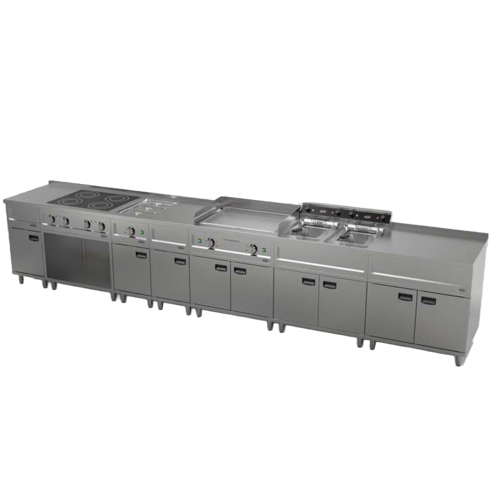 Modulair systeem: uitbreidbaar met een bakplaat, inductiefornuis, bain-marie of neutraal element binnen dezelfde lijn