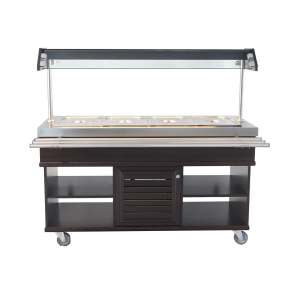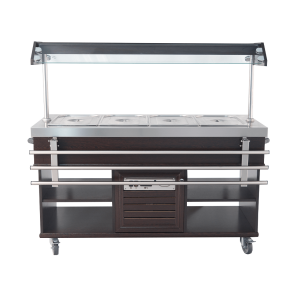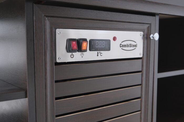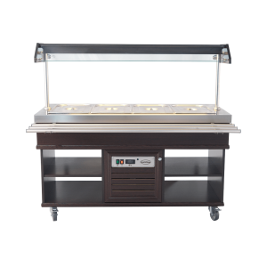 Dit veelzijdige gekoelde buffet is ideaal voor restaurants, hotels, cateraars en andere horecagelegenheden waar versheid en presentatie hand in hand gaan. Dankzij het ruime GN 4/1-formaat biedt dit buffet voldoende capaciteit om diverse gerechten gekoeld te presenteren. Het stijlvolle en robuuste ontwerp, uitgevoerd in de kleur mahonie, past moeiteloos in elke professionele omgeving. De efficiënte statische koeling zorgt ervoor dat voedsel op de juiste temperatuur blijft, terwijl de LED-verlichting een moderne uitstraling biedt en de gerechten optimaal verlicht voor uw gasten. De afmetingen zijn 1500x700x1400 mm (LxDxH) – verbruik 0,35 kW – temp. +4/+8ºC – gewicht 125 kg.