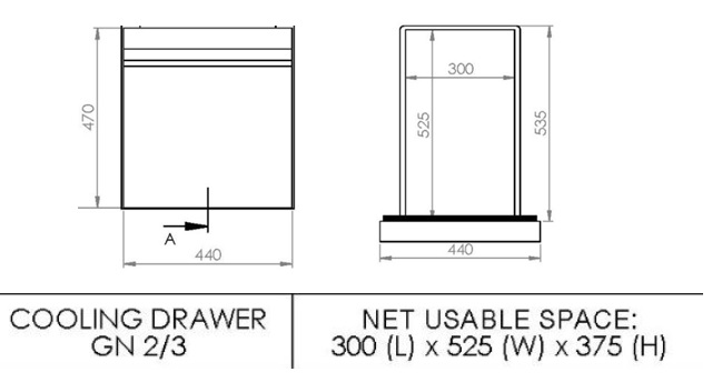 Gekoelde ladenindeling: 3x GN 2/3 – perfect voor gekoelde ingrediënten