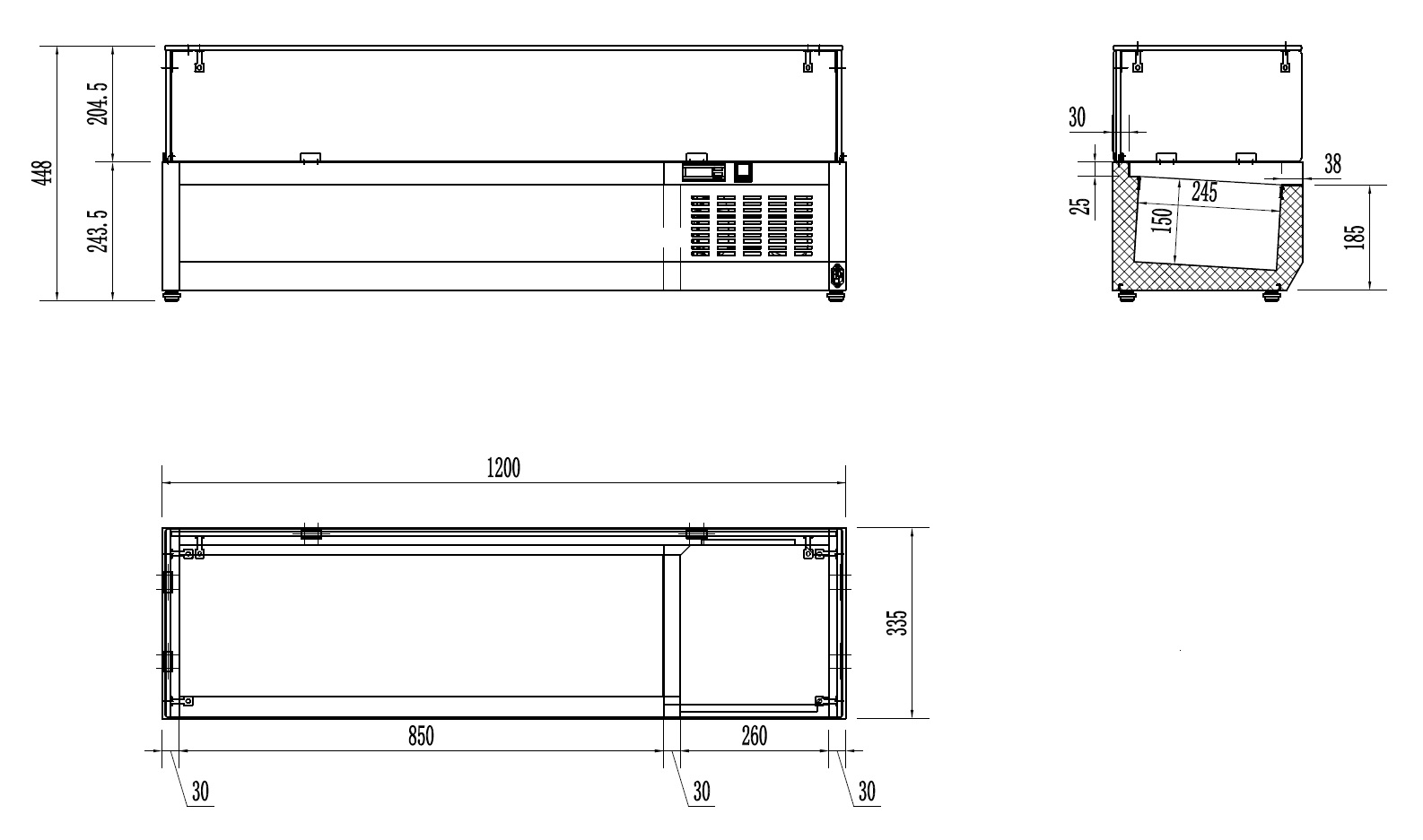 GEKOELDE OPZETVITRINE 1/4 GN x 5