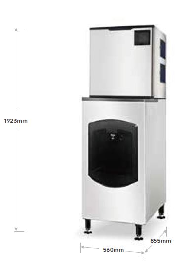 Deze robuuste ijsdispenser is perfect voor horecagelegenheden die snel en efficiënt ijs willen serveren. Met een capaciteit van 60 kg en een ijsproductie van 5 kg per minuut is deze dispenser ideaal voor drukbezochte locaties zoals restaurants, bars en hotels. Het compacte ontwerp en het geavanceerde koelsysteem garanderen een constante levering van vers, hard ijs zonder veel bijvullen. De dispenser beschikt over een functie die automatisch elke vier uur gedurende tien seconden draait om te voorkomen dat het ijs bevriest tot grote blokken. De afmetingen zijn 560x855x1923 mm (LxBxH) – verbruik: 0.97 kW – gewicht: 124 kg.