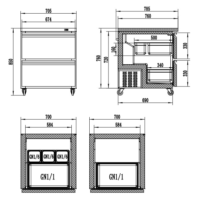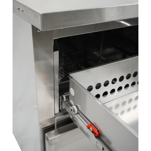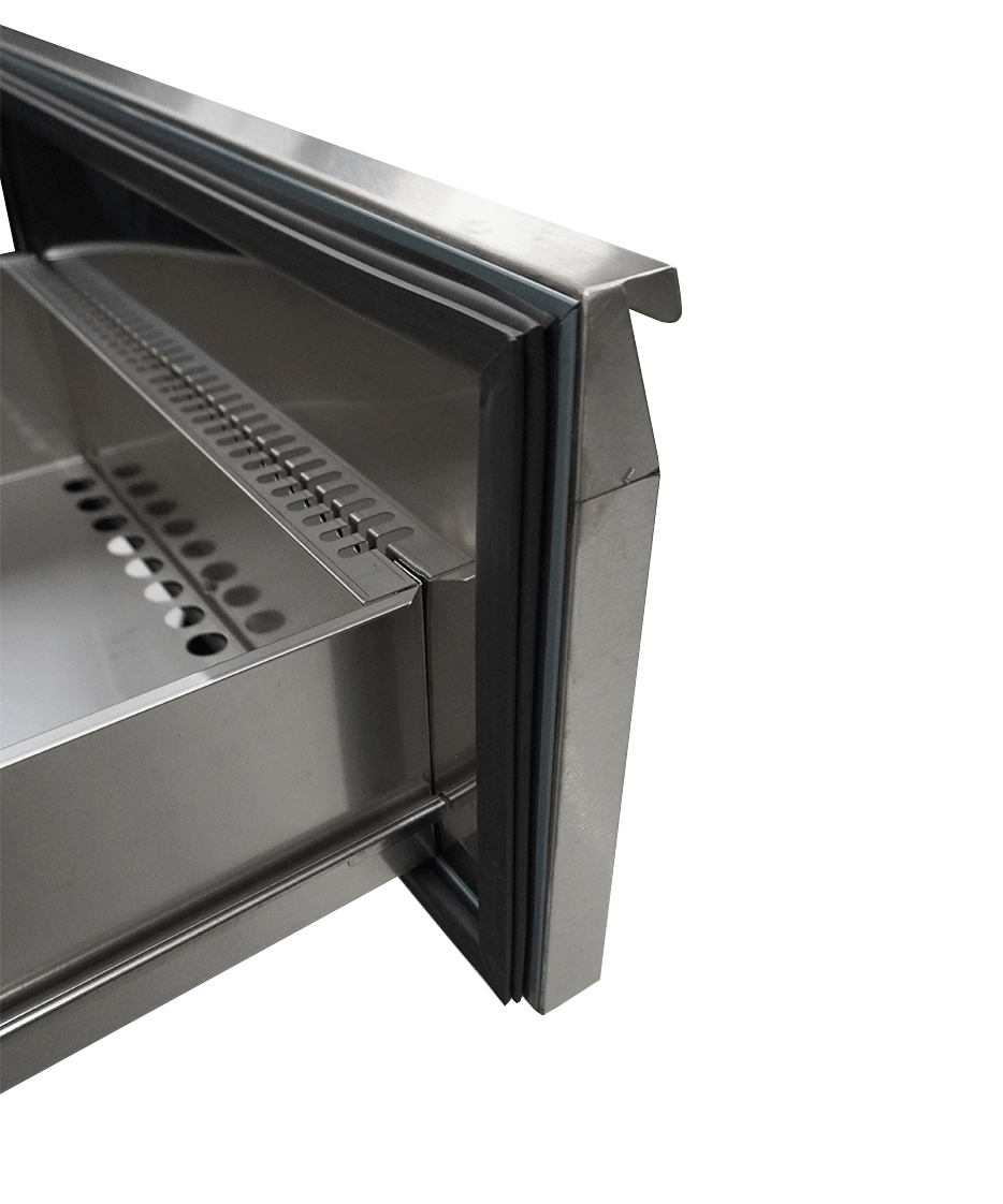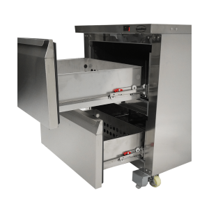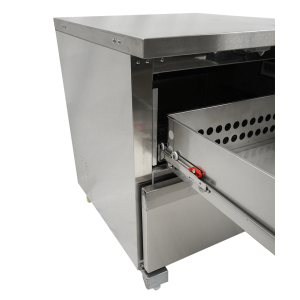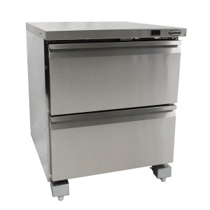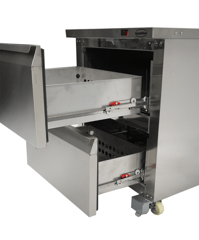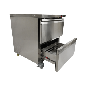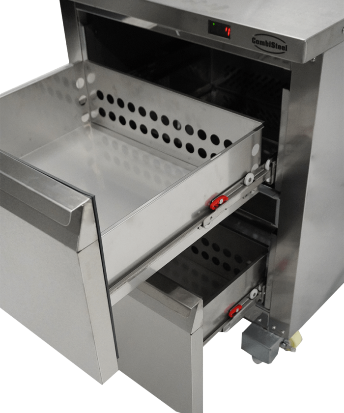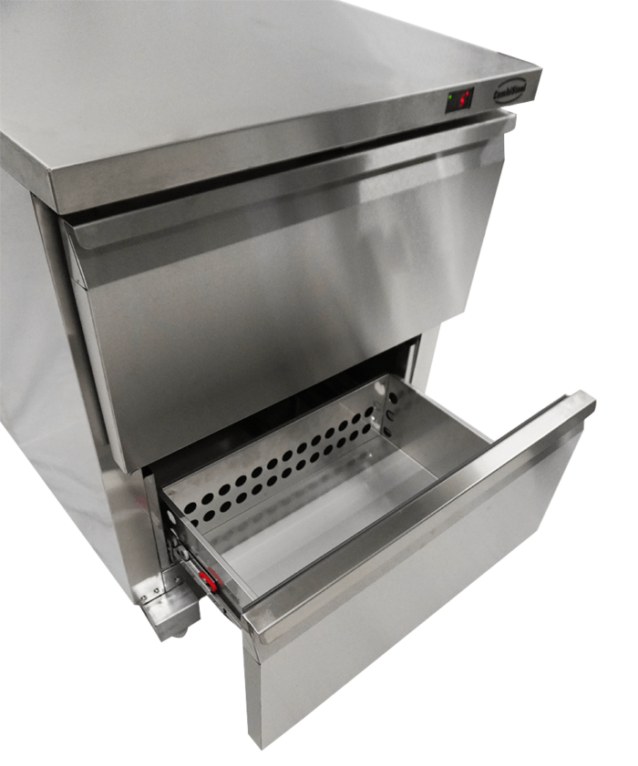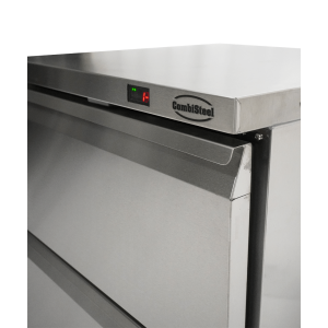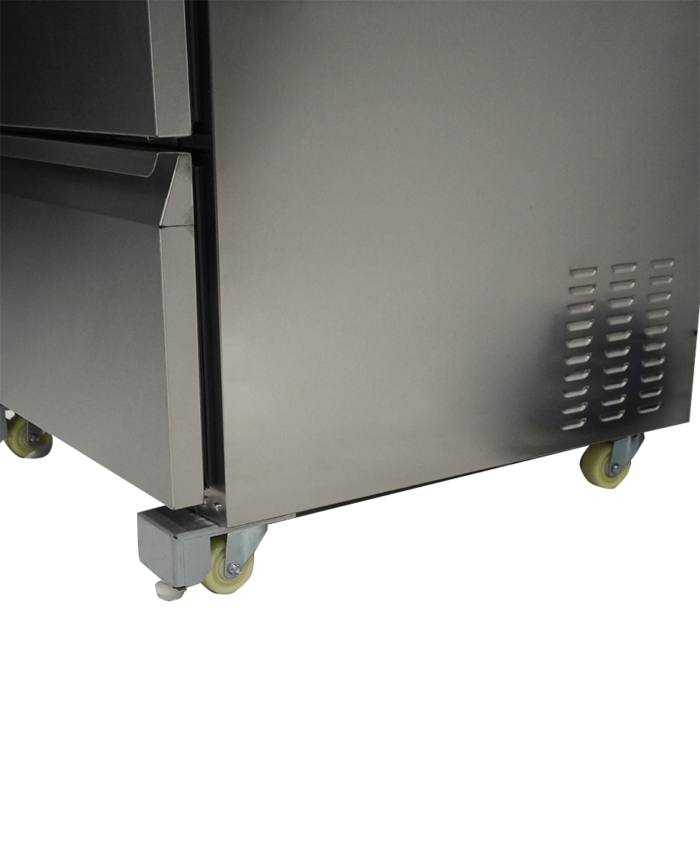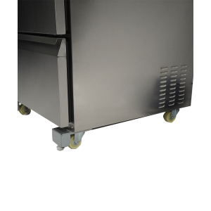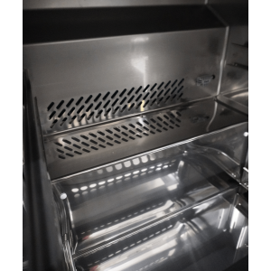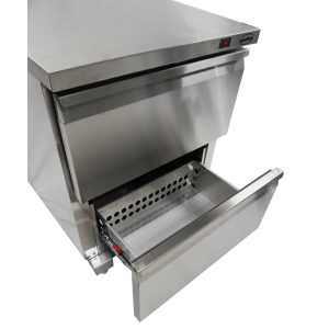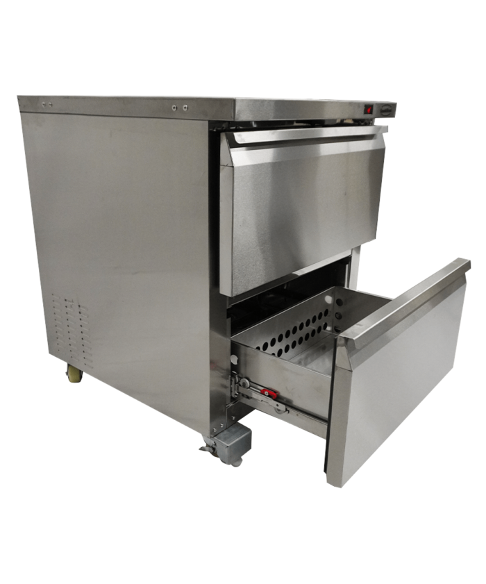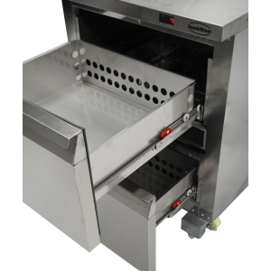 Deze compacte en veelzijdige RVS tafelmodel koel-/vrieskast met 2 laden is ideaal voor professionele keukens waar flexibiliteit, duurzaamheid en efficiëntie centraal staan. Dankzij de omschakelfunctie schakel je eenvoudig tussen koelen of vriezen, afhankelijk van de behoefte. De robuuste lades zorgen voor overzichtelijke opslag en gemakkelijke toegang tot producten. Gemaakt van hoogwaardig roestvrij staal, verrijdbaar en eenvoudig te reinigen – perfect voor intensief dagelijks gebruik. Voorzien van geventileerde koeling, digitale bediening en automatische ontdooiing. Afmetingen: 705x785x850 mm – Vermogen: 0,25 kW – Inhoud: 185 liter – Temp.: +1/+4ºC / -18/-21ºC – Gewicht: 97 kg.