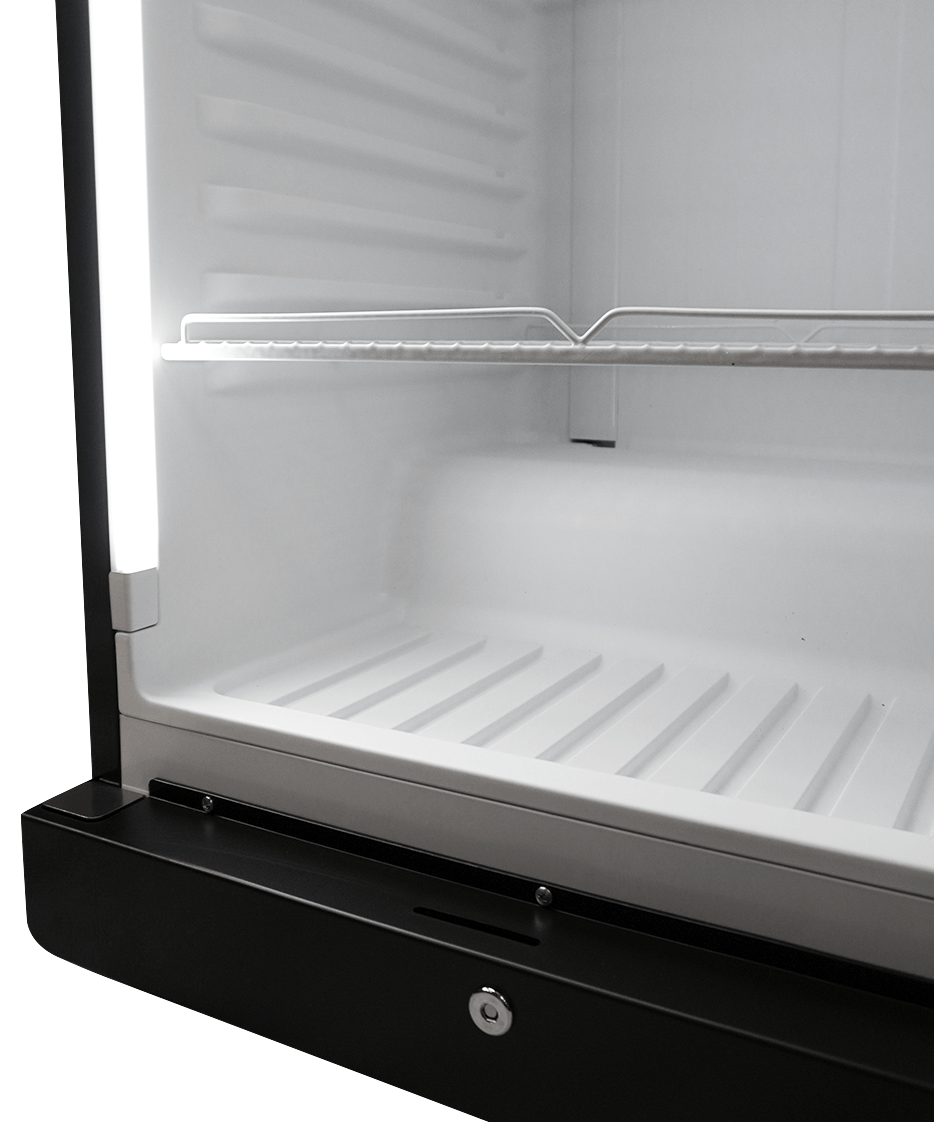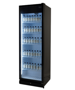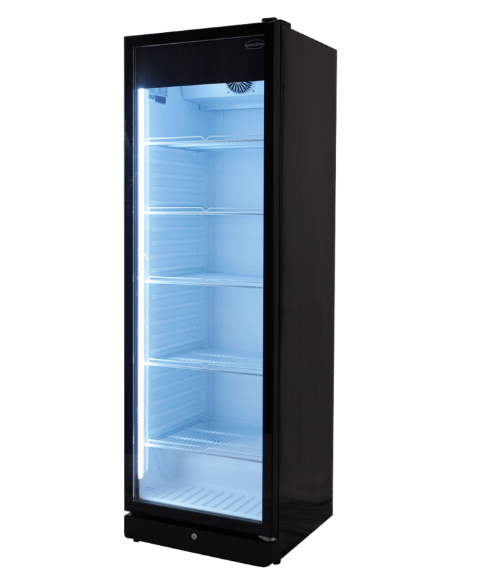 Ontdek onze elegante en praktische zwarte glasdeurkoelkast PIB-360R met 1 deur!