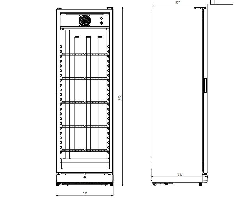 Deze zwarte glasdeurkoelkast is de ideale oplossing voor elke horecagelegenheid, maar ook perfect voor semi-professioneel of thuisgebruik. Het strakke zwarte design maakt het niet alleen een functioneel apparaat, maar ook een moderne eyecatcher in je ruimte. Met het geventileerde koelsysteem worden je producten gelijkmatig gekoeld, zodat ze altijd op de juiste temperatuur zijn. De efficiënte LED-verlichting belicht de inhoud helder en energiezuinig. De roosters zijn verstelbaar, zodat je de ruimte kunt aanpassen aan de grootte van je producten. De afmetingen zijn 595x585x1864 mm (LxDxH) – verbruik 0,32 kW – inhoud 354 liter – temperatuur +1/+10ºC – gewicht 60 kg.