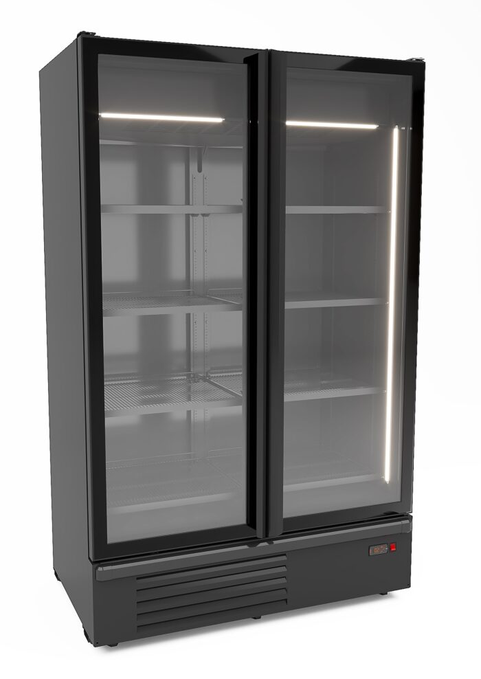 KOELKAST 2 GLASDEUREN ZWART 1200L