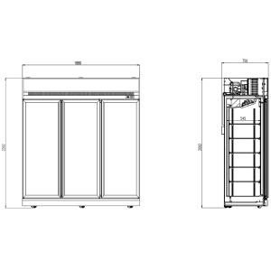 Deze koelkast heeft een moderne uitstraling, zelf sluitende deuren, verstelbare schappen en digitale temperatuur aflezing. Het geventileerde koelsysteem zorgt voor efficiënte koeling, terwijl automatische ontdooiing het onderhoud minimaliseert. De LED-verlichting verlicht je producten optimaal en de deurverwarming voorkomt condensvorming, eenvoudig in- of uit te schakelen. De afmetingen zijn 1880x710x1997 mm (LxDxH) – verbruik 0.57 kW – inhoud 1530 liter – temp. 0/+10ºC – gewicht 282 kg.