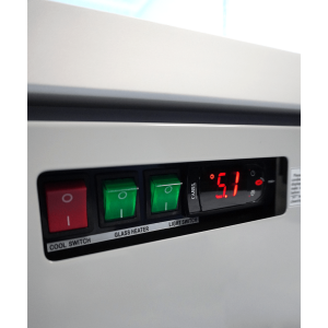 Deze koelkast heeft een moderne uitstraling, zelf sluitende deuren, verstelbare schappen en digitale temperatuur aflezing. Het geventileerde koelsysteem zorgt voor efficiënte koeling, terwijl automatische ontdooiing het onderhoud minimaliseert. De LED-verlichting verlicht je producten optimaal en de deurverwarming voorkomt condensvorming, eenvoudig in- of uit te schakelen. De afmetingen zijn 1880x710x1997 mm (LxDxH) – verbruik 0.5773 kW – inhoud 1530 liter – temp. 0/+10ºC – gewicht 207.5 kg.