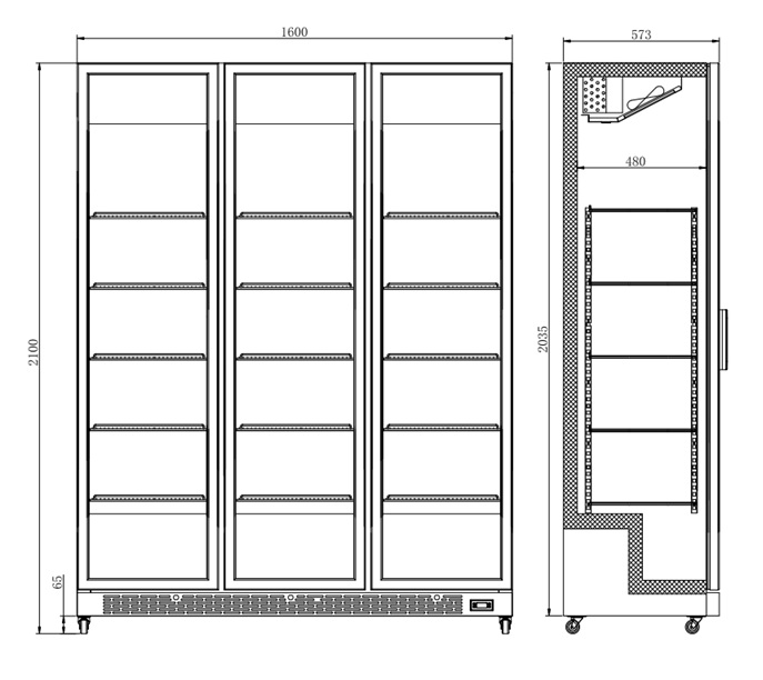 Deze zwarte koelkast heeft een moderne uitstraling, zelf sluitende deuren, verstelbare schappen en digitale temperatuur aflezing. Het geventileerde koelsysteem zorgt voor efficiënte koeling, terwijl automatische ontdooiing het onderhoud minimaliseert. De LED-verlichting verlicht je producten optimaal. De afmetingen zijn 1600x600x2100 mm (LxDxH) – verbruik 0.6 kW – inhoud 1200 liter – temp. +2/+10ºC – gewicht 152 kg.
