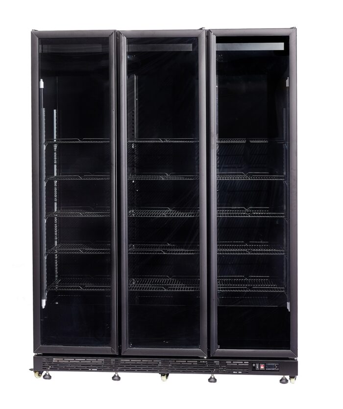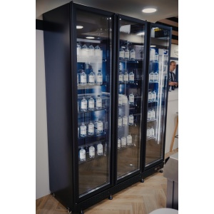 Maak kennis met onze indrukwekkende retail zwarte koeling met 3 glasdeuren, speciaal ontworpen voor supermarkten en professionele instellingen!