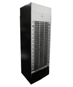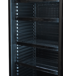 De SVE-450 BLC combineert strak design met maximale zichtbaarheid. Deze volledig zwarte glasdeurkoelkast met 1 deur is uitgerust met een opvallende lichtbak bovenop, waarmee je producten of branding direct in het oog springen. Dankzij het zwarte interieur en exterieur oogt hij modern en professioneel in elke horecazaak, winkel of showroom. De statische koeling houdt alles perfect op temperatuur, terwijl de energiezuinige LED-verlichting je producten helder presenteert. Met een inhoud van 400 liter, 5 verstelbare roosters, een zelfsluitende deur en een slot is hij zowel flexibel als veilig in gebruik. Afmetingen 650x595x1950 mm (BxDxH) – inhoud 400 liter – verbruik 0,23 kW – temperatuur +2/+10 °C – gewicht 66 kg.