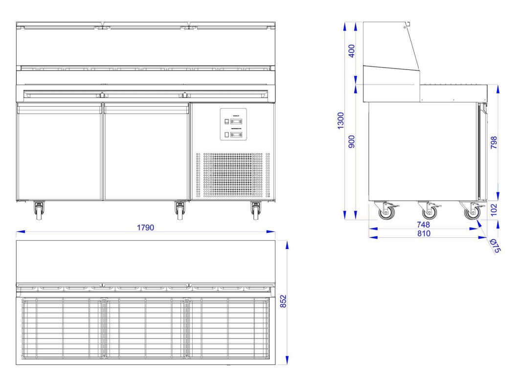 PIZZAWERKBANK 2 DEUREN 9x 1/3 GN PAN