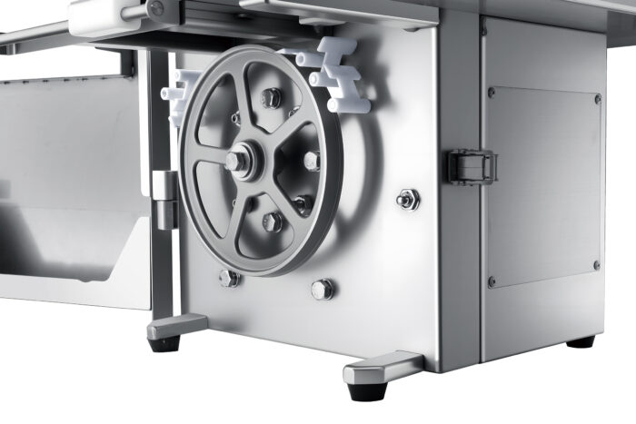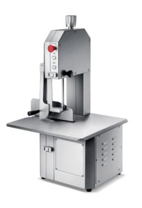 Ontdek onze robuuste en efficiënte RVS lintzaag met 2100 mm zaagblad, perfect voor professionele keukens, slagerijen en voedselverwerkingsbedrijven. Dankzij de krachtige 1,5 kW motor en het hoogwaardige zaagblad snijdt deze machine moeiteloos door vlees, vis en botten, zodat je snel en nauwkeurig kunt werken. Het duurzame roestvrijstalen ontwerp garandeert een lange levensduur en eenvoudig onderhoud, terwijl de compacte afmetingen zorgen dat hij ook in drukke werkruimtes gemakkelijk te plaatsen is. De lintzaag is voorzien van een noodstop voor maximale veiligheid. Afmetingen: 607x657x1152 mm (LxBxH) – Verbruik: 1,5 kW – Voeding: 230V – Zaagbladlengte: 2100 mm – Gewicht: 65 kg.