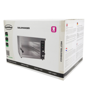 Deze hoogwaardige salamander biedt een efficiënte manier om gerechten snel en gelijkmatig te verwarmen of gratineren. Geschikt voor zowel professionele keukens als enthousiaste thuiskoks. Het compacte ontwerp maakt het eenvoudig te integreren in je keukenopstelling, terwijl de robuuste constructie garant staat voor langdurig gebruik en betrouwbare prestaties. De afmetingen zijn 582x400x380 mm (LxDxH) – verbruik 3.15 kW – gewicht 14.7 kg.