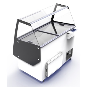 Presenteer uw ambachtelijke ijs op de best mogelijke manier met onze schepijsvitrine. Dankzij een efficiënte koeltechniek en een stijlvol ontwerp blijft uw ijs perfect op temperatuur en aantrekkelijk gepresenteerd voor uw klanten. De schepijsvitrine Cuba  heeft plaats voor 13 bakken van 5 liter en de onderkoeling biedt extra opslagruimte. Het model is verrijdbaar, zodat je het flexibel kunt verplaatsen. Afmetingen: 1664x842x1285 mm (BxDxH) – Temperatuur: -24/-14ºC – Energieverbruik: 0,19 kW – Gewicht: 150 kg.