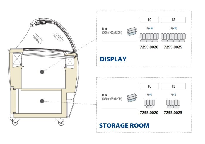Het model heeft geen inzet waar de ijsbakken in geplaatst kunnen worden.