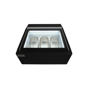 Deze compacte zwarte schepijsvitrine is perfect voor ijssalons, cafés, foodtrucks en restaurants. Ideaal voor het presenteren van ijs, sorbets en andere gekoelde lekkernijen. Met een strak en stijlvol ontwerp en geavanceerde technologie biedt deze vitrine alles wat je nodig hebt om je producten op hun best te presenteren. Afmetingen: 670x750x375 mm (BxDxH) – Temperatuur: -18ºC/-16ºC – Energieverbruik: 0,19 kW – Gewicht: 67 kg.