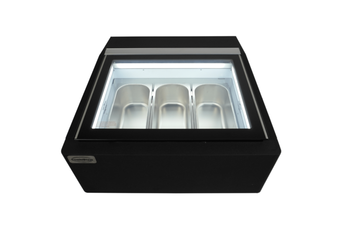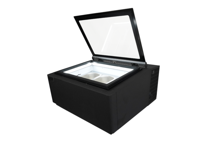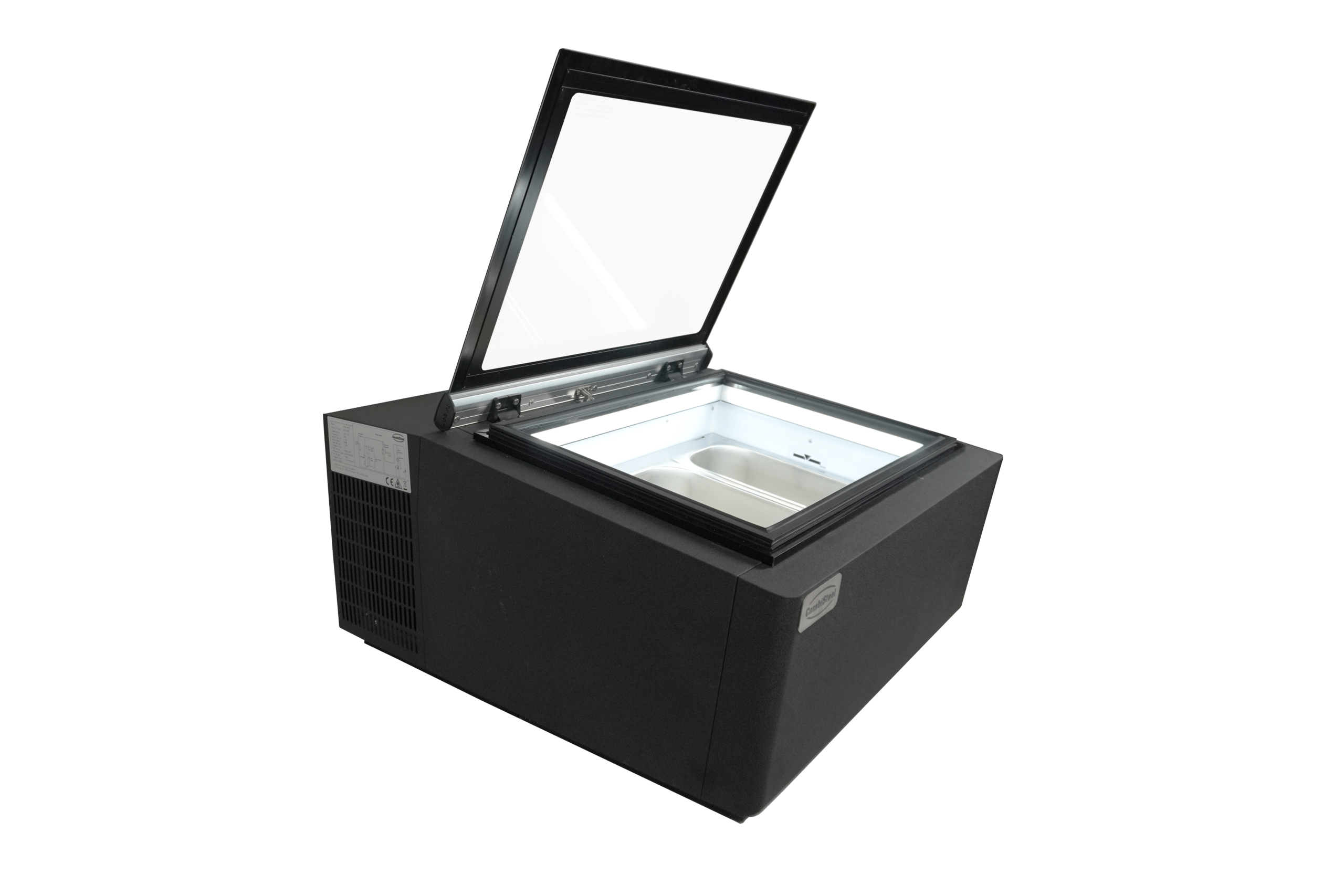 Of je nu een kleine horecazaak runt of een mobiele foodtruck beheert, deze tafelmodel schepijsvitrine combineert functionaliteit en stijl voor een professionele presentatie van jouw gekoelde lekkernijen.