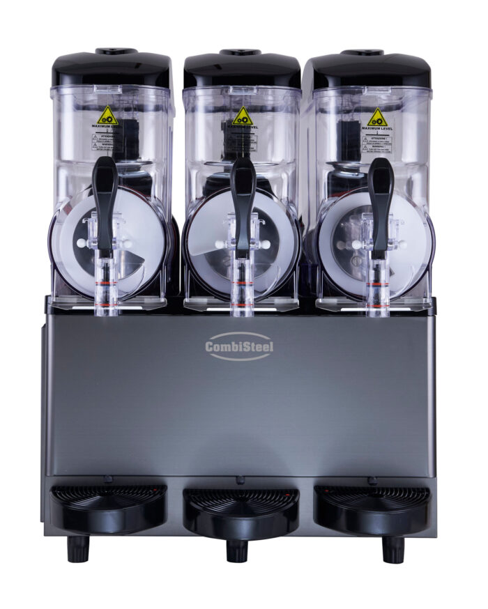 De zwarte Combisteel slush machine is perfect voor elke gelegenheid, of je nu een druk café runt, een evenement verzorgt, of verfrissing bij je maaltijd wilt bieden. Met een royale capaciteit van 3×12 liter kan deze machine moeiteloos verfrissende slushies produceren voor grote groepen. De machine is compact en eenvoudig te bedienen, zodat je zonder moeite heerlijke bevroren drankjes kunt maken. Bovendien trekt hij de aandacht met zijn strakke, moderne uitstraling. De afmetingen zijn 690x570x945 mm (LxDxH) – verbruik 1.16 kW – gewicht 64.5 kg.