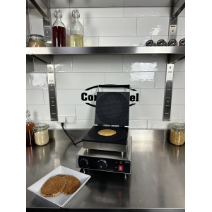 Dit praktische stroopwafelijzer is perfect voor zowel professioneel gebruik op markten, evenementen en in horecagelegenheden, als voor enthousiaste thuisbakkers. Dankzij het compacte ontwerp is dit apparaat gemakkelijk te verplaatsen en op te bergen, terwijl het krachtige verwarmingselement zorgt voor consistent perfecte stroopwafels. Het ijzer heeft een klassieke ronde vorm, ideaal voor authentieke stroopwafels. De afmetingen zijn 305x430x505 mm (LxBxH) – verbruik 1.75 kW – gewicht 10 kg.