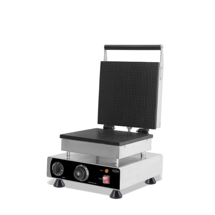 Dit praktische stroopwafelijzer is perfect voor zowel professioneel gebruik op markten, evenementen en in horecagelegenheden, als voor enthousiaste thuisbakkers. Dankzij het compacte ontwerp is dit apparaat gemakkelijk te verplaatsen en op te bergen, terwijl het krachtige verwarmingselement zorgt voor consistent perfecte stroopwafels. Het ijzer heeft een vierkante vorm, ideaal voor unieke, vierkante stroopwafels die een eigentijdse twist geven aan de klassieker. De afmetingen zijn 305x430x505 mm (LxBxH) – verbruik 1.75 kW – gewicht 9.5 kg.
