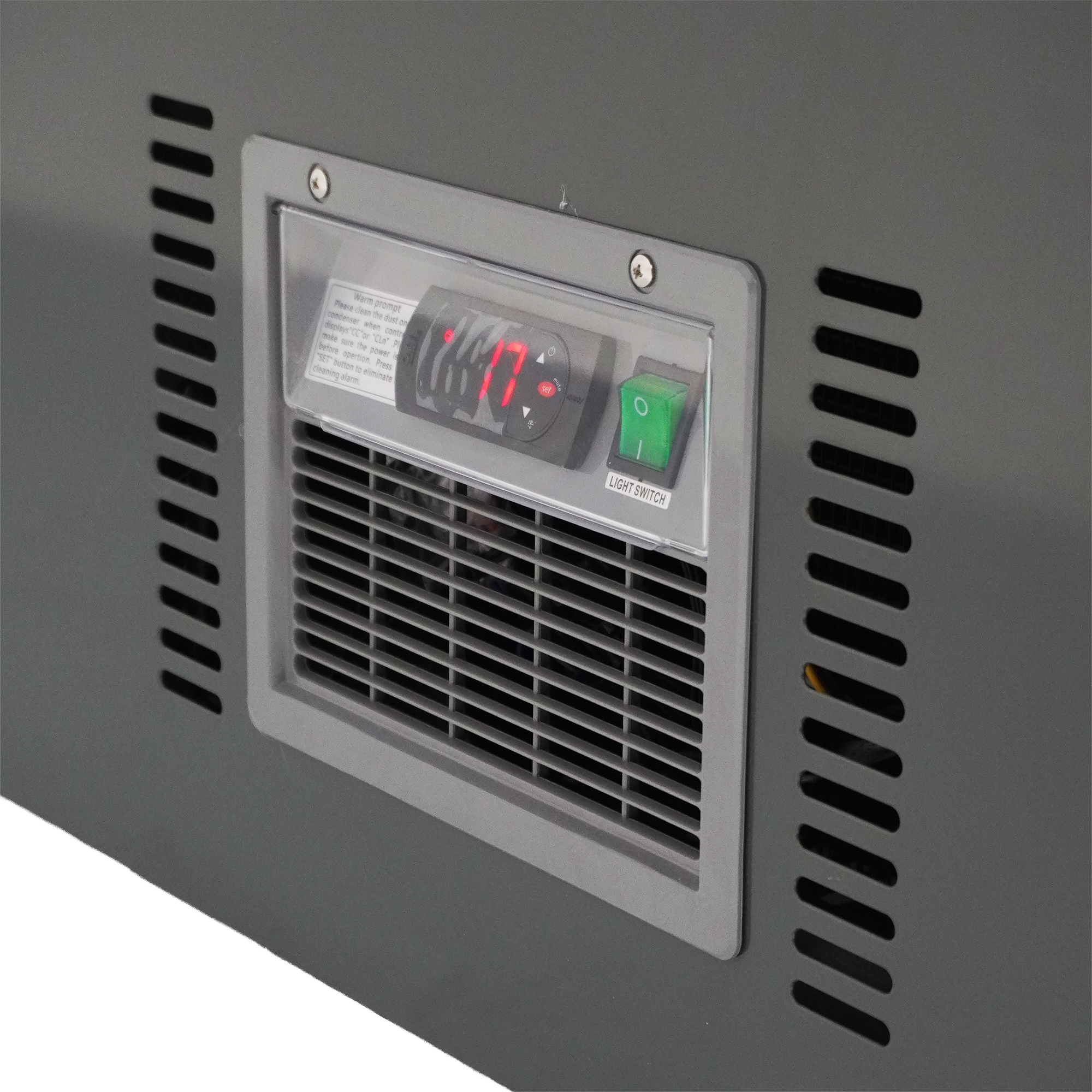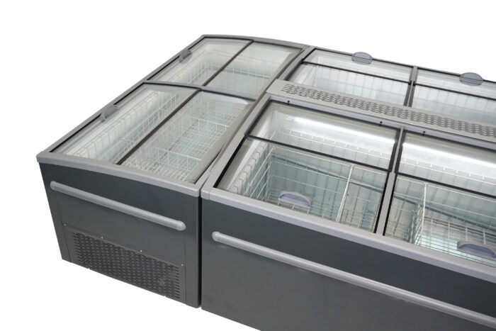 Deze vrieskist combineert een strak ontwerp met praktische functionaliteit. Voorzien van glazen schuifdeksels voor goede zichtbaarheid en gemakkelijke toegang, statische koeling, automatische ontdooiing en energiezuinige LED-verlichting. De digitale regelaar maakt het instellen van de juiste temperatuur eenvoudig, terwijl het royale interieur van 850 liter zorgt voor maximale opslagcapaciteit. De afmetingen zijn 2100x850x870 mm (BxDxH) – verbruik 0,7 kW – temperatuurbereik -22/-18ºC – gewicht 113 kg.