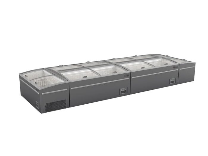 Deze vrieskist combineert een strak ontwerp met praktische functionaliteit. Voorzien van glazen schuifdeksels voor optimale productzichtbaarheid en gemakkelijke toegang, statische koeling, automatische ontdooiing en energiezuinige LED-verlichting. De digitale regelaar maakt het instellen van de juiste temperatuur eenvoudig, terwijl het royale interieur van 1040 liter maximale opslagcapaciteit biedt. De afmetingen zijn 2500x850x870 mm (BxDxH) – verbruik 0,75 kW – temperatuurbereik -22/-18ºC – gewicht 120,5 kg.