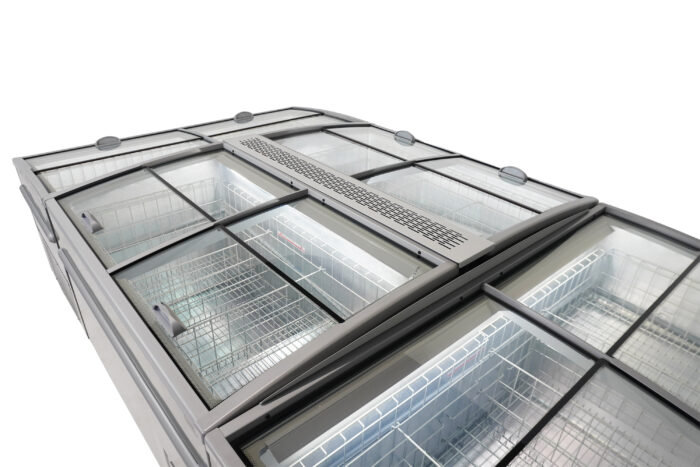 Dit kopelement heeft een strak en functioneel design en is uitgerust met glazen schuifdeksels voor optimale zichtbaarheid en gebruiksgemak. Het beschikt over statische koeling, automatische ontdooiing en energiezuinige LED-verlichting. De digitale regelaar zorgt voor een nauwkeurige temperatuurinstelling. Met een royale inhoud van 630 liter en afmetingen van 1850x850x795 mm (BxDxH) biedt dit kopelement maximale flexibiliteit. Verbruik 0,55 kW – temperatuurbereik -22/-18ºC – gewicht 100,5 kg.